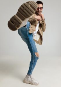 キックする男性