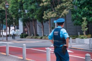 警察官が道端に立つ