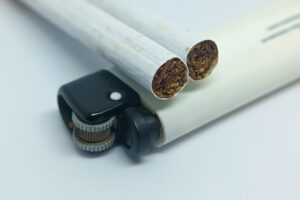 - Close-up,Shot,Of,Two,Cigarettes,Lying,On,A,Lighter.,Cigarettes