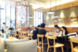 - Abstract,Blurred,Background,Of,Family,On,Table,With,Ceiling,Lamp