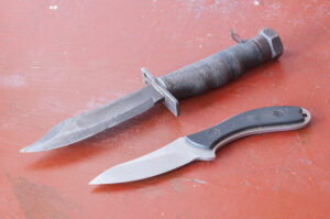 - Old,Used,Bowie,Knife,And,Fixed,Blade,Field,Knife,On