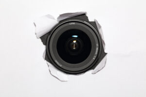 Camera,Lens,Hiding,Behind,The,Paper,Wall,,Ready,To,Take