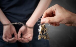 - Zipper,Bag,With,Marijuana.,Arrested,Man,In,Handcuffs,In,The